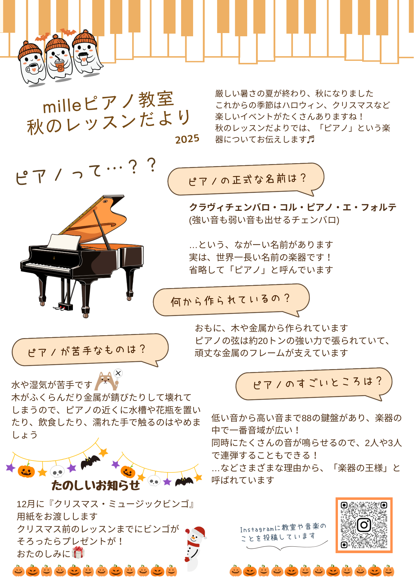「milleピアノ教室 秋のレッスンだより」をお渡ししています。